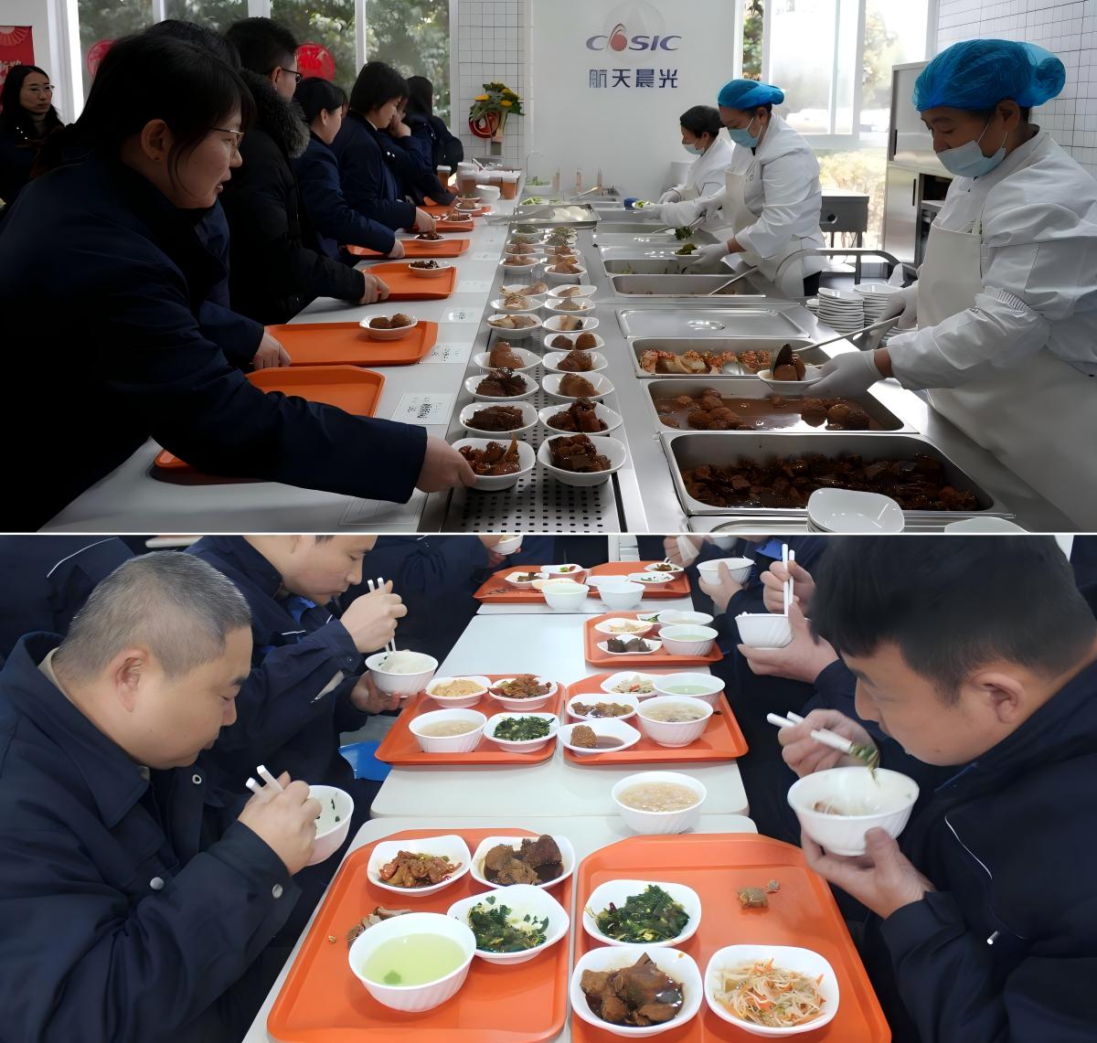 春節開工第一天,航天晨光兩個園區食堂及六個就餐點同步完成煥新升級,以整潔靚麗的嶄新面貌正式亮相,用暖心服務為職工開啟新一年的奮斗征程。現場暖意融融、喜氣盎然,通透敞亮的空間布局和文化布置令人耳目一新,一盤盤色香味俱全、分量精巧的菜品令職工食欲大開。