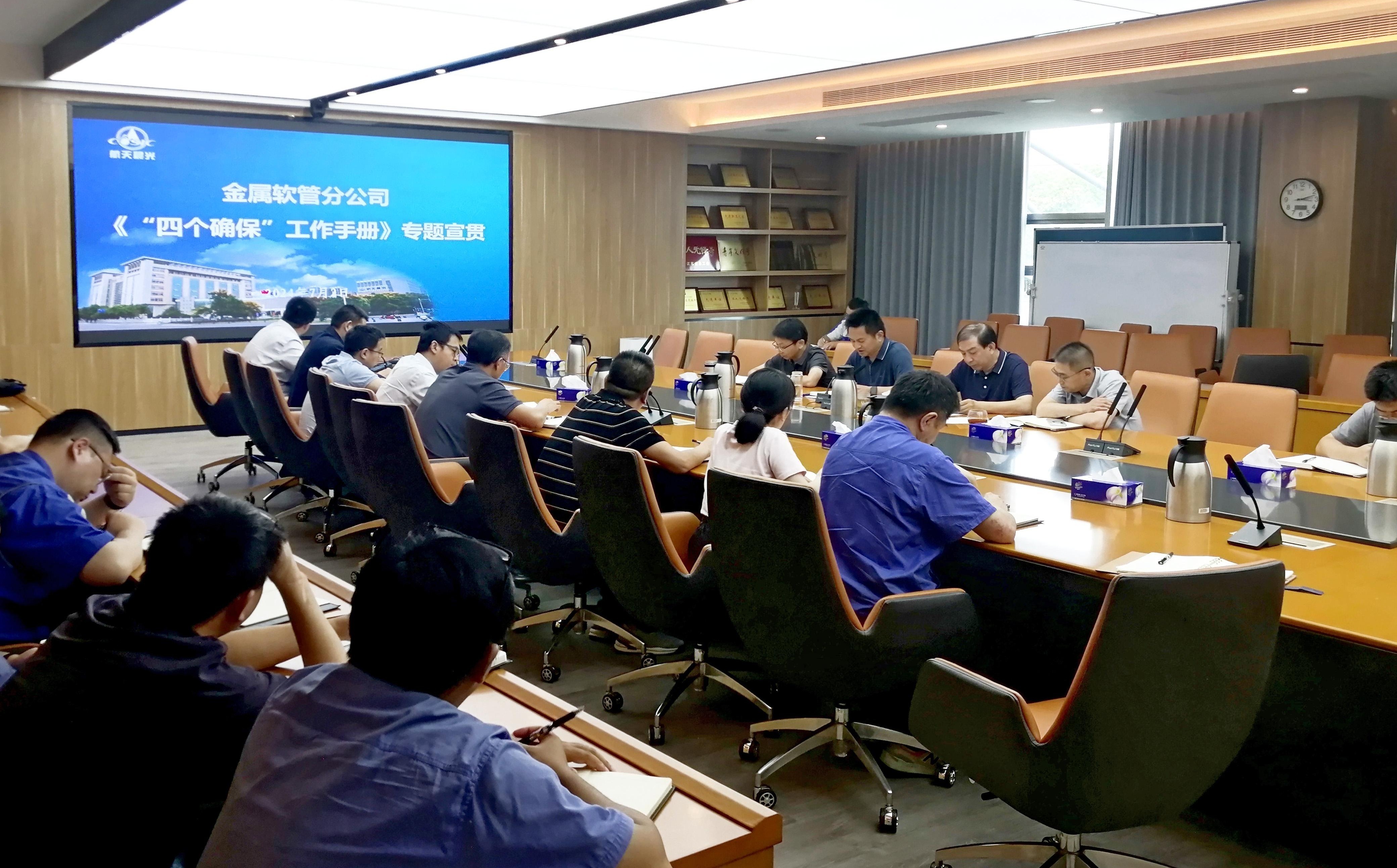 近日,航天晨光軟管分公司組織召開學習集團公司“四個確保”工作手冊專題會議。分公司在寧領導班子成員、各部門負責人、工段長參加會議,會議由分公司總經理薛雄建主持。