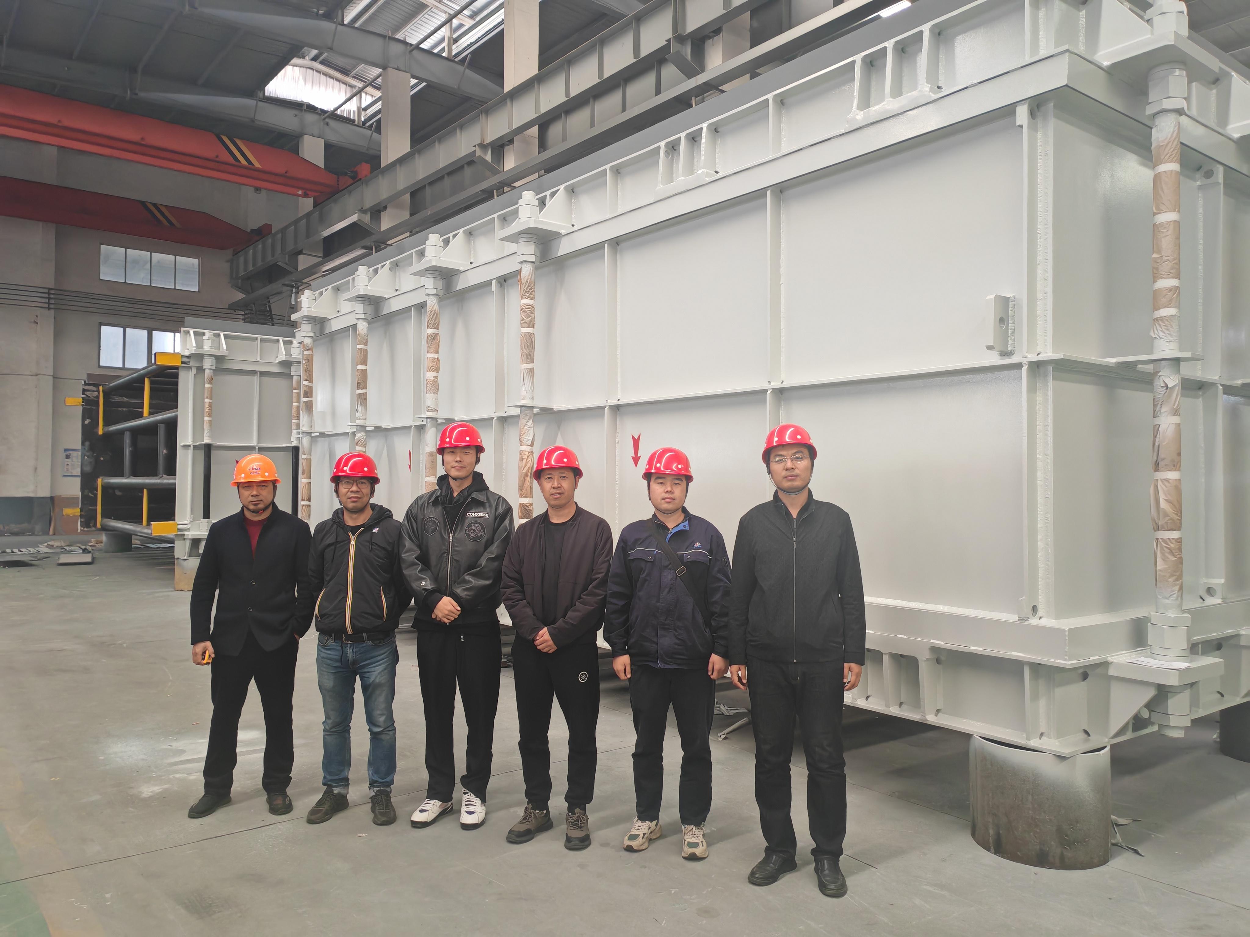 超大型產(chǎn)品對設(shè)計、生產(chǎn)、檢驗、運輸、現(xiàn)場組裝過程都提出了更高的要求。在設(shè)計過程中,突擊隊吸取問題產(chǎn)品的教訓(xùn),采用更適合的產(chǎn)品選型與更加穩(wěn)定的波形結(jié)構(gòu);對于產(chǎn)品整體的加強與支撐結(jié)構(gòu),采用有限元仿真進行整體校核;在生產(chǎn)中,為保障大尺寸板材的焊接形變量與焊縫強度,關(guān)鍵部位的每一道加工工序、拼接方式都進行嚴(yán)格梳理;因為產(chǎn)品的設(shè)計要求,如何保證產(chǎn)品分解運輸與組裝后的可靠性成了重中之重,小組成員在分解組裝方案上進行反復(fù)討論與修改,確保產(chǎn)品的每一道焊縫質(zhì)量足夠抵抗全真空的工作環(huán)境。面對項目即將完工時的突發(fā)狀況,突擊隊勇于創(chuàng)新、敢于擔(dān)當(dāng),在大家的通力配合下,項目順利通過了業(yè)主方與SGS項目驗收。