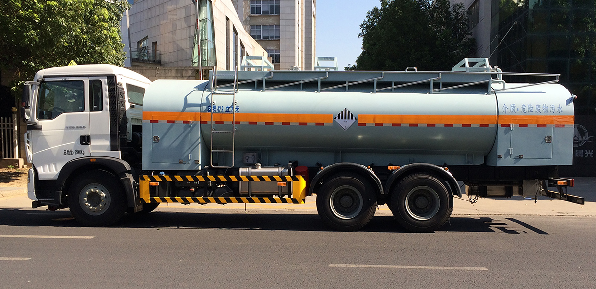 CGJ5251GZWE4型杂项危险物品罐式运输车用于收集、运输于化工、电子、污泥处理等行业产生的具有一定危险性,且介质可以定义为杂项危险废物或杂项危险货物的液体(如部分废酸、废碱液,含铜、含镍、含锌、含铁的废液,各种浓缩废液、脱脂废液、浸酸废液、浓缩废水、除油废水、脱膜废水、废乳化液、废研磨液等)。车辆罐体严格按照GB/T18564.1-2006《道路运输液体危险货物罐式车辆第1部分-金属常压罐体技术要求》设计制造。车辆具有抽吸功能,可使用软管将介质抽吸入罐体内进行运输。