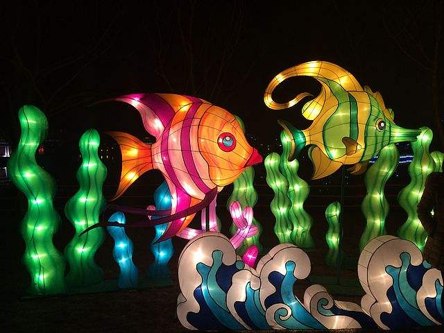 花燈,又叫彩燈,是我國(guó)各地普遍流行的裝飾性的傳統(tǒng)工藝品?;羲囆g(shù)是燈的裝飾藝術(shù),是人們利用竹木、金屬、綾絹、綢緞、明珠、玉佩、絲穗、紙品、獸角、玻璃、羽毛、貝殼、麥稈、塑料等材料,根據(jù)形式美得法則或各地審美習(xí)慣、審美意識(shí)并綜合彩扎、裱糊、編結(jié)、刺繡、雕刻輔以剪紙,書(shū)畫等造型技藝設(shè)計(jì)制作的具有光亮的彩燈藝術(shù)。平日可用它烘托婚壽喜慶氣氛,到元宵燈節(jié),它便是人們觀賞、娛樂(lè)、競(jìng)技、競(jìng)藝的佳品。